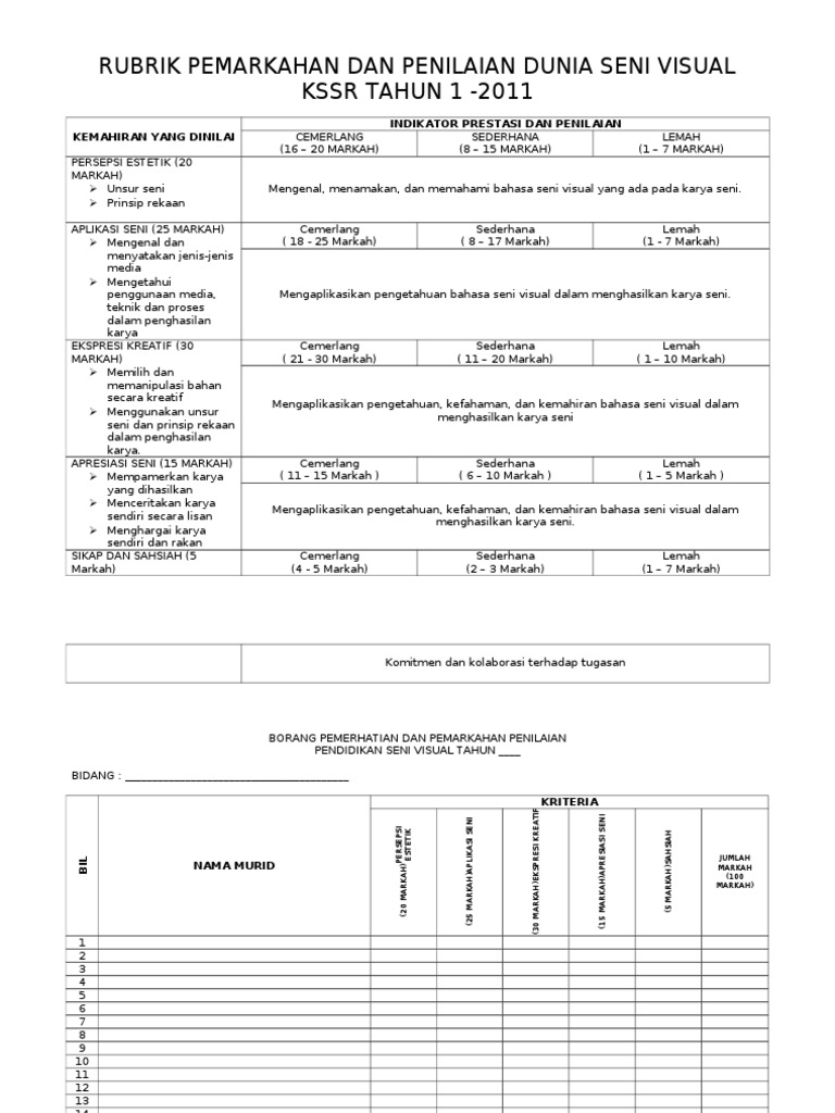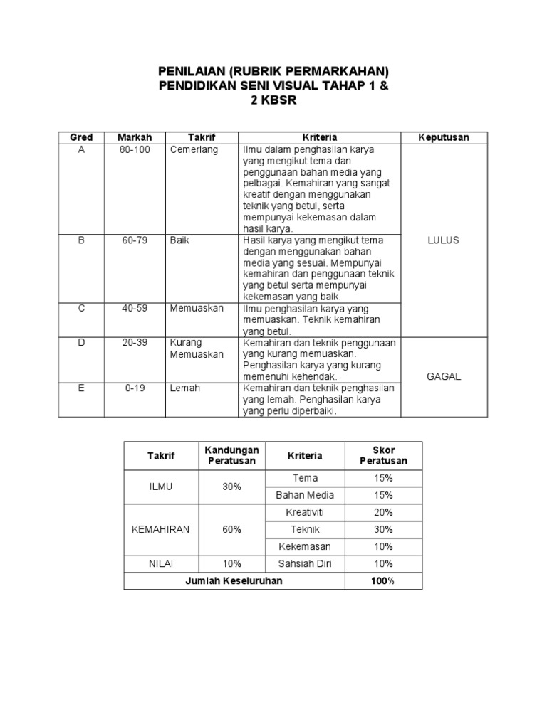Rubrik Pemarkahan Dan Penilaian Pendidikan Seni Visual Sekolah Rendah Pdf